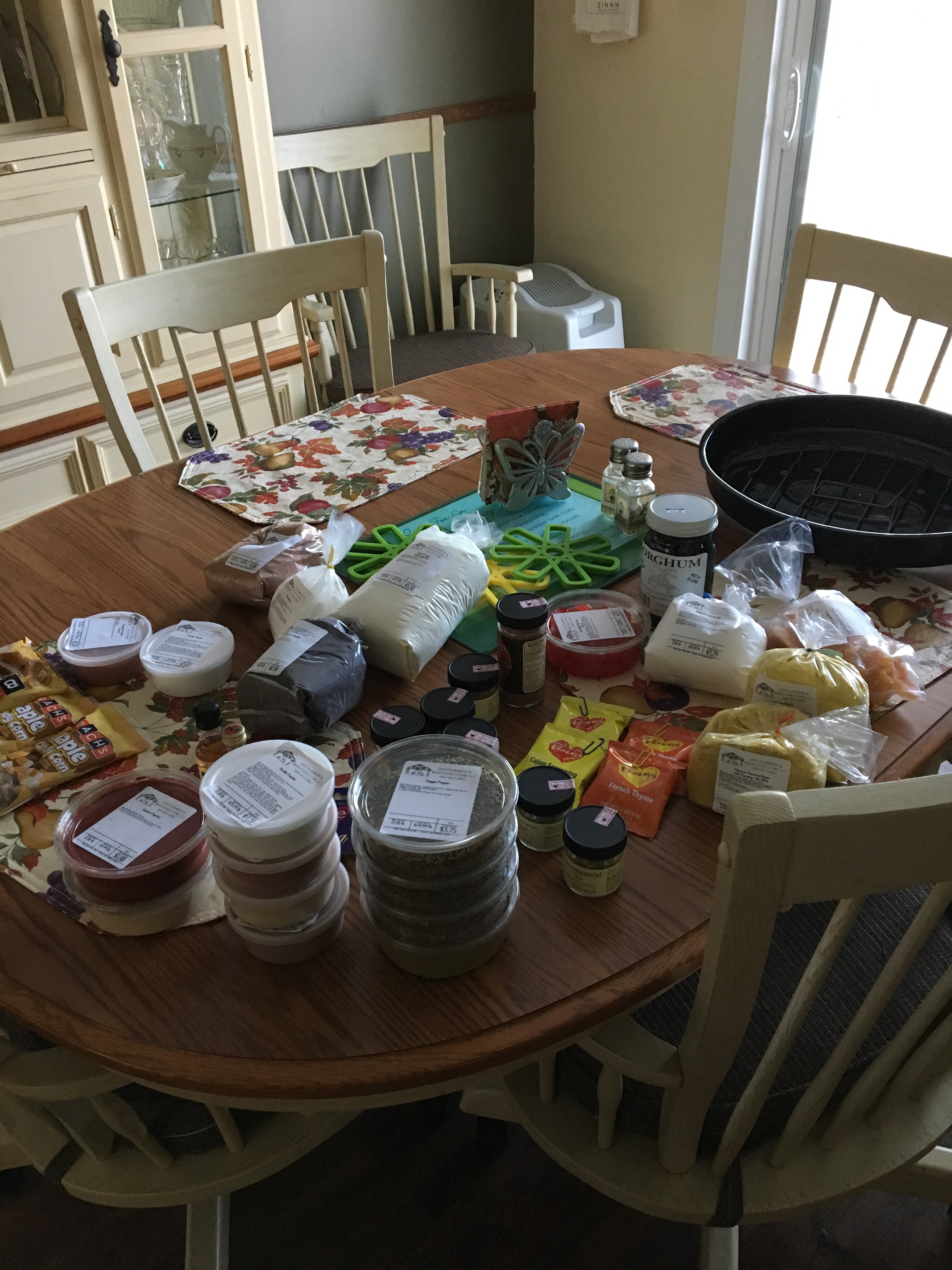 Then I discovered a new spice store, Prezy’s Spices at Boone’s Landing in Chesterfield, Missouri. More supplies came home with me. Admittedly a few items were on my daughter’s shopping list, too, but obviously I am ready: